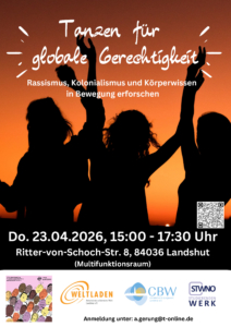 Im Rahmen der Wochen gegen Rassismus bietet dieser Workshop einen bewegungsbasierten Zugang zu den Themen Rassismus, Kolonialismus und globale Gerechtigkeit. Er richtet sich an Studierende, Interessierte, Multiplikator*innen und gesellschaftlich Engagierte.